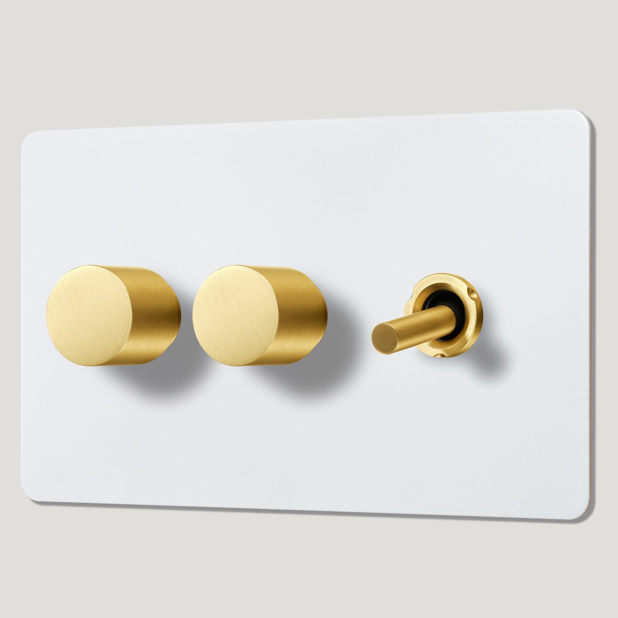 Plank Hardware Electric MAXWELL 3G Paintable Mixed Switch 1Toggle/ 2Dimmer - Brass Plank Hardware Electric MAXWELL 3G Paintable Mixed Switch 1Toggle/ 2Dimmer - Brass Plank Hardware Electric MAXWELL 3G Smooth Mixed Switch 1Toggle / 2Dimmer - Brass Plank Hardware Electric MAXWELL 3G Smooth Mixed Switch 1 Toggle / 2 Dimmer - Brass