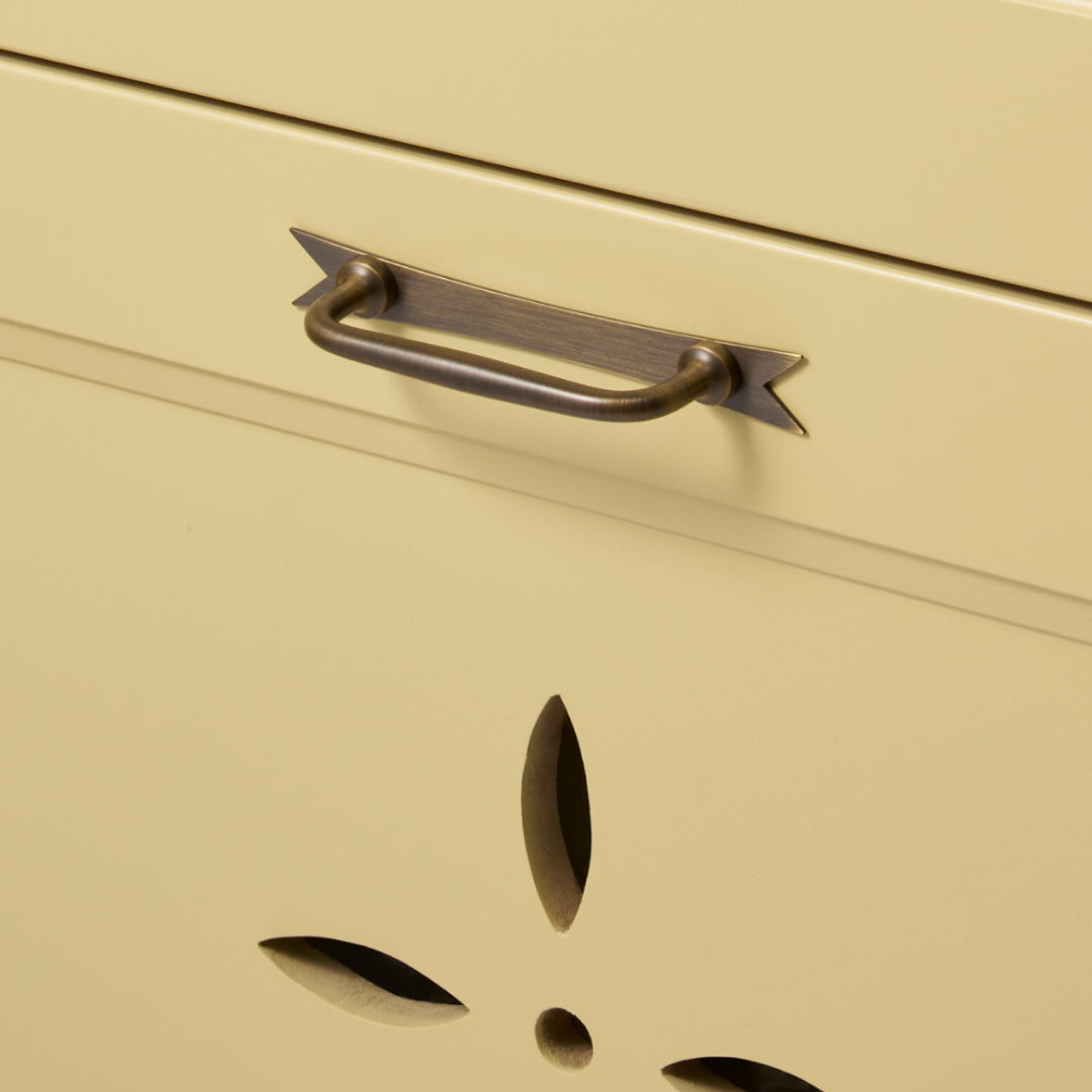 Our ELIZA Handle with Ribbon Backplate features a ribbon-shaped silhouette that adds a refined decorative touch, bringing elegance and charm to dressers and wardrobe doors.